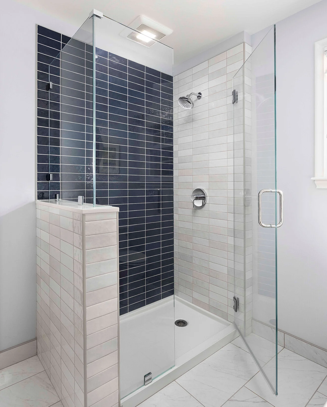 The current primary bathroom was very small and not functional for two people. Besides the need for more space, entering the home and looking straight at the toilet wasn’t ideal.