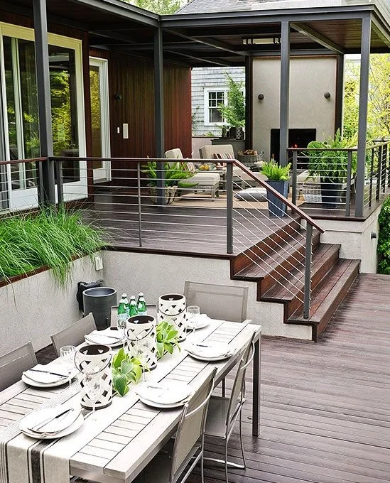 If you worry about having enough room, you could always consider a few outdoor deck ideas that incorporate multiple levels. Building a deck or patio with different levels will add architectural interest to your space while also giving you more control over how the space is used. With having multiple levels, you may want to consider having each level be for one specific function. Just be sure to tie them all together with aesthetic details like similar landscaping and decor. Additionally, you’ll want to make sure that they all connect by an easily-accessed stairway or path.