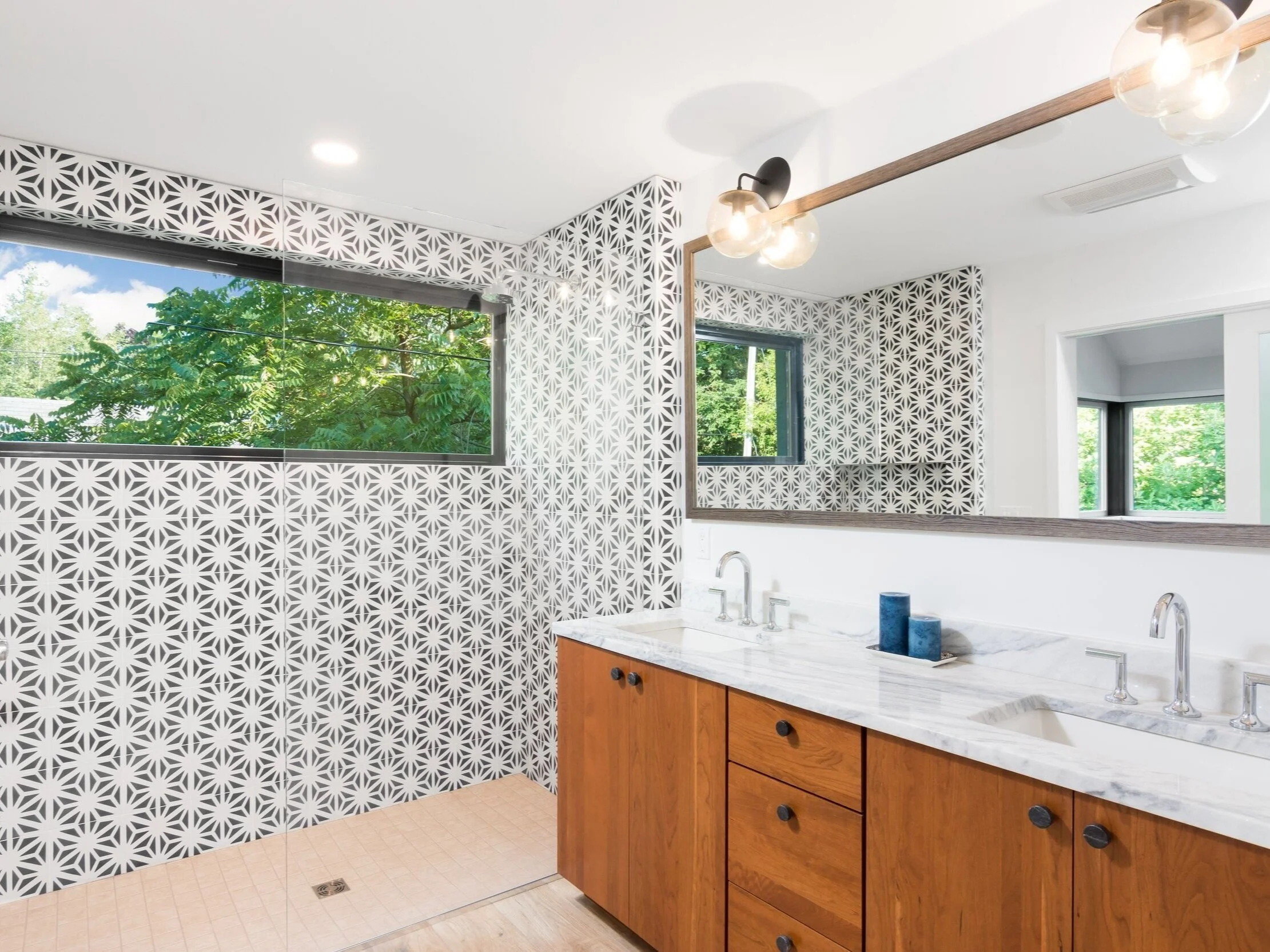 Looking to add character to your bathroom? Fun, bold patterns a fresh, modern way to add a textured look and create a wonderful focal point. Pops of texture like these are trending as an excellent way to take your decorating up a notch.